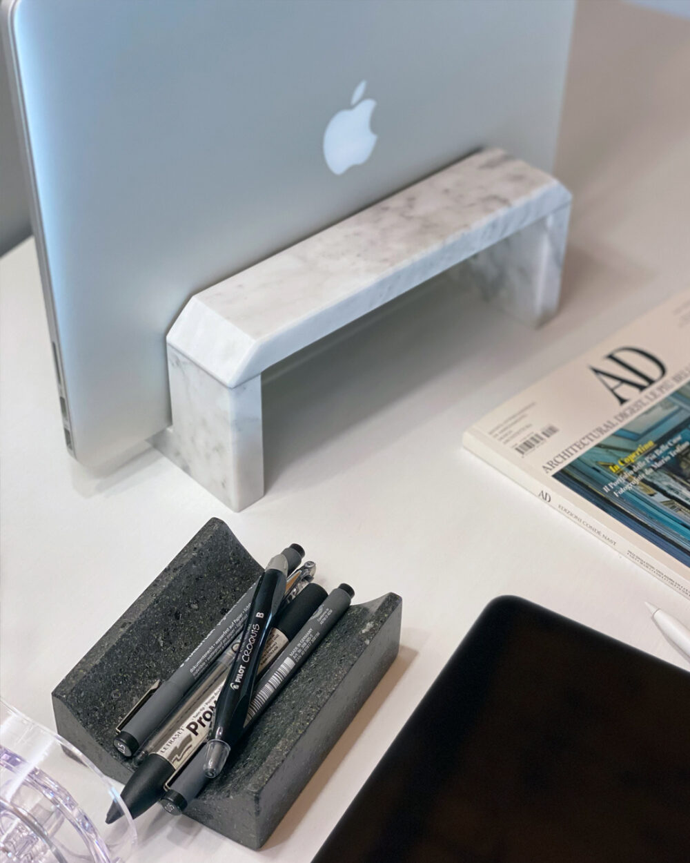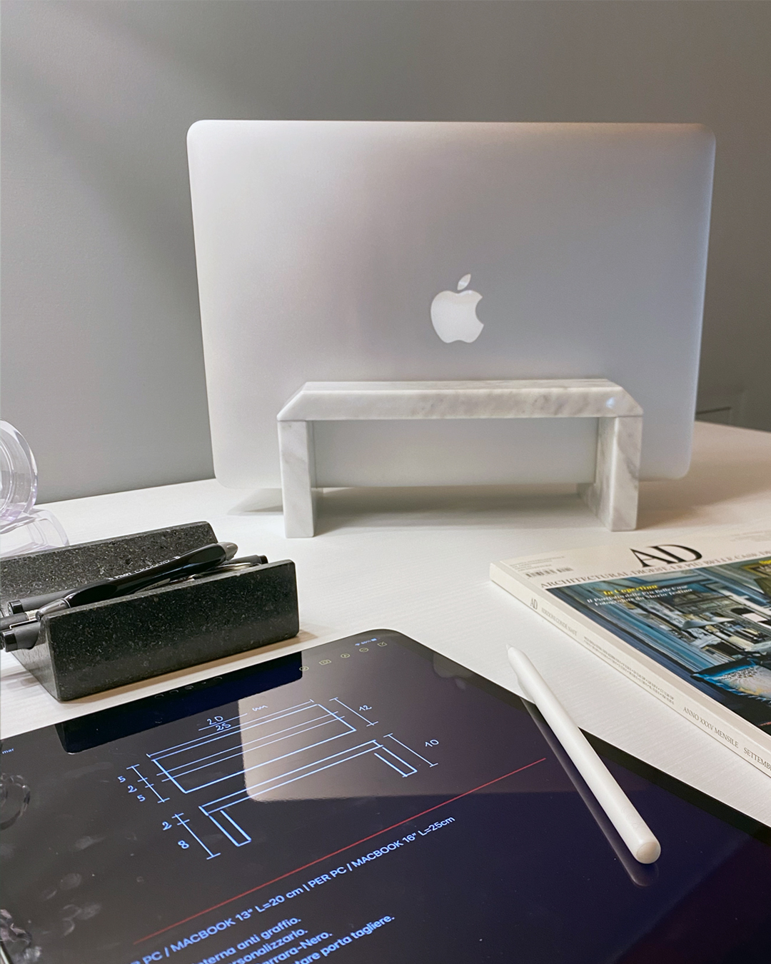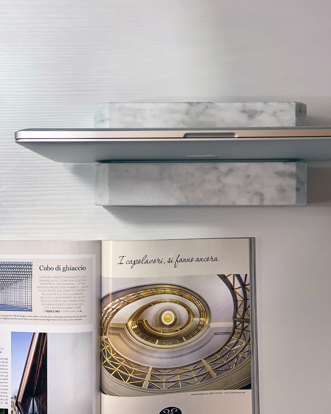 Raffinatezza e praticità si incontrano in MARMONIE RÈGO, l’accessorio da scrivania che eleva l’uso del notebook in sinergia con monitor esterni. RÈGO nasce dalla necessità di organizzare lo spazio lavorativo con stile, offrendo una base ampia e sicura per posizionare il laptop verticalmente, liberando così la scrivania per un aspetto più ordinato e spazioso.